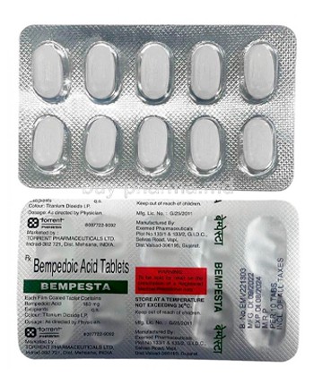 - Obvyklá dávka bempedoic acid je 180 mg užívané jednou denně.