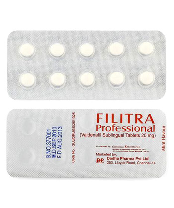 - Filitra Professional se používá k léčbě erektilní dysfunkce. Lék působí inhibicí fosfodiesterázy typu 5, čímž zvyšuje prokrvení penisu a usnadňuje dosažení erekce.
