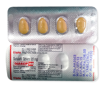 | Tadacip | Indie (Cipla) | Box of 4, 10, 20 tablets (film-coated), 20 mg per tablet |