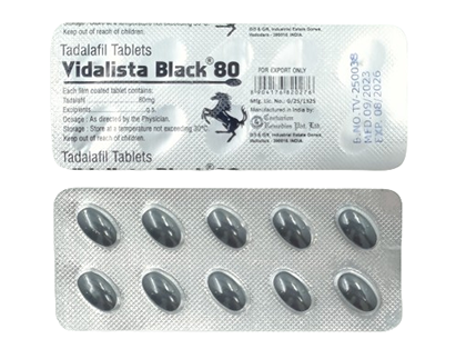 - Vidalista Black je určen k léčbě erektilní dysfunkce. Účinná látka tadalafil působí jako inhibitor PDE5, což zvyšuje průtok krve do penisu při sexuální stimulaci.